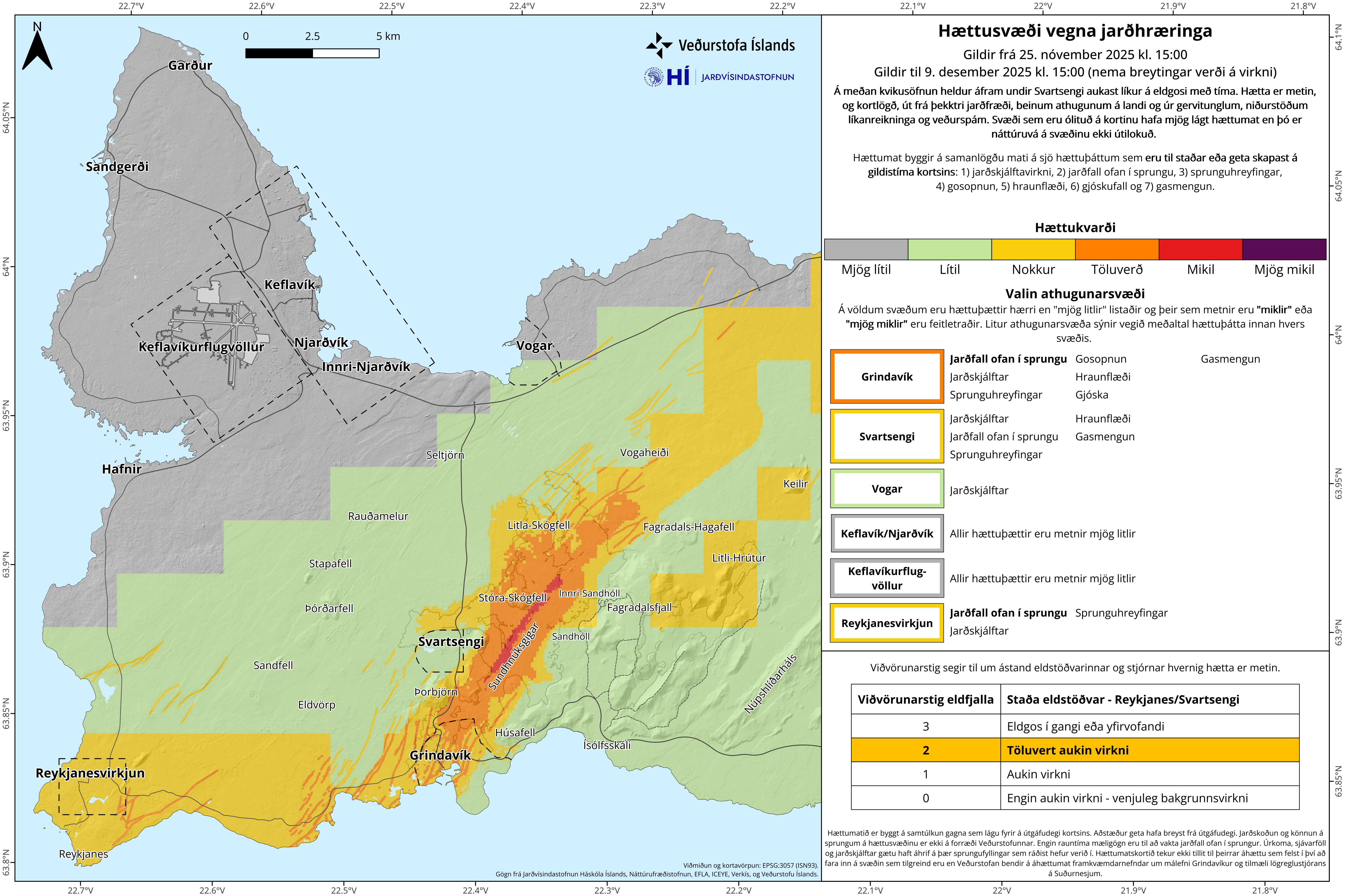 Hættumatskortið gildir frá 25. nóvember og verður uppfært næst 9. desember nema breytingar á virkni kalli á nýja útgáfu.