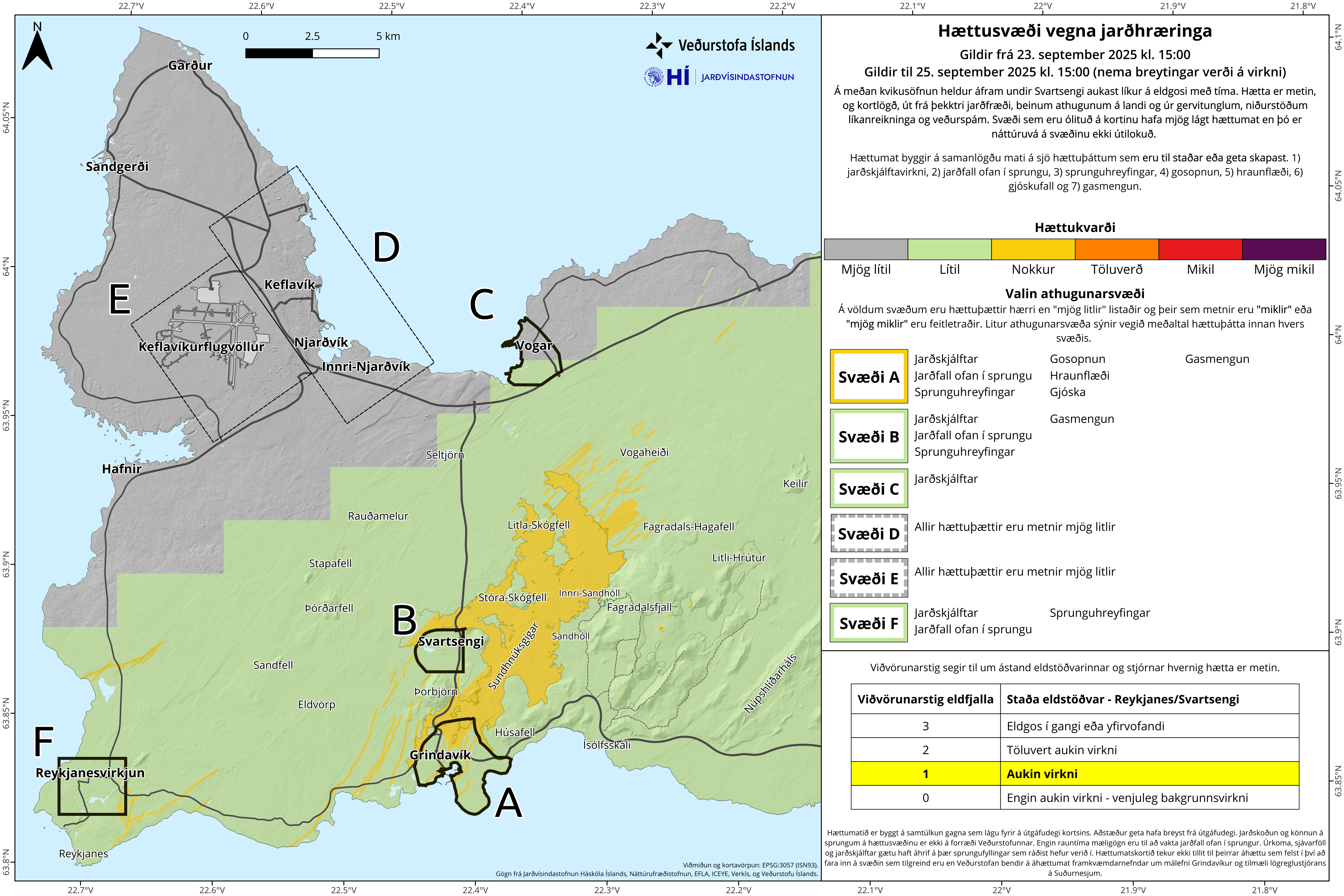Nýtt hættumatskort hefur verið gefið út og gildir frá 25. september til 14. október, nema breytingar á virkni kalli á annað