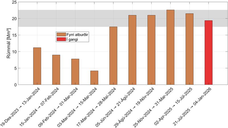 Rúmmálið nálgast það magn sem hljóp þaðan í síðasta atburði